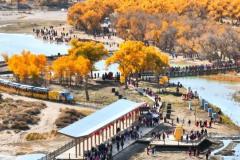 随着国庆长假的结束,阿拉善盟额济纳的旅游热潮并未减退,不少游客选择错峰出游,从10月9日至今,文旅市场持续火热,迎来节后“错峰游”小高潮。随着气温逐渐走低,额济纳胡杨林叶片变黄比例已达约90%,如画景致吸引着全国各地游客前来观赏。