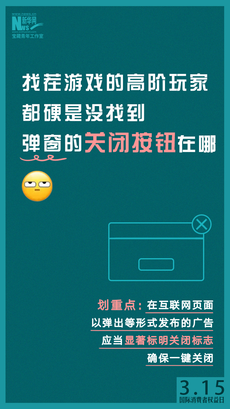 这些话,今天必须说!时间:2022-03-15 在生活中 你是否遇到过 这样的问题和困扰? 直播网购买到假冒商品 浏览网页时广告疯狂弹窗关不掉 办完卡遇到商家“卷钱”跑路 …… 今天是“3・15”国际消费者权益保护日 有些话忍不住了 小编必须要说!
