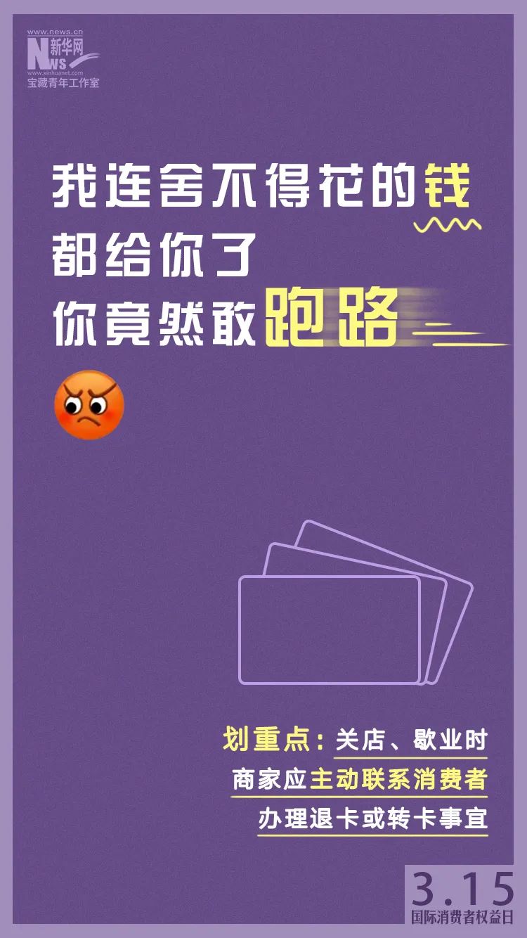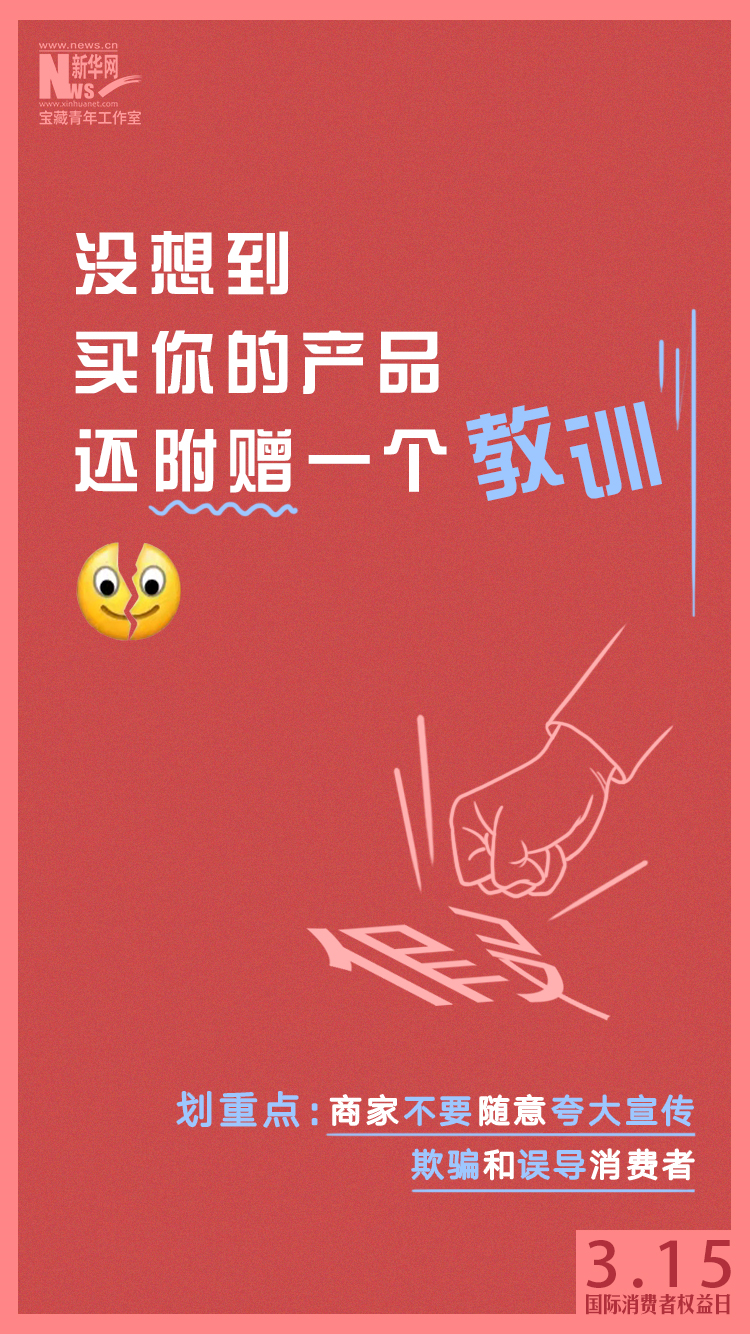 是不是感觉 每句话都说出了你的心声? 在日常生活中 如果我们的合法权益受到侵害 应该怎么办? 作为消费者 千万不要害怕维权 可以拨打12315或者其他投诉电话举报 利用好法律这把锋利的武器 在法治框架内 维护自己的合法权益 让不良商家付出应有的代价 同时 我们也应该提升自我的 消费安全意识和防范能力 但筑牢消费安全的防线 更重要的 是需要商家承担起 诚信经营的责任与义务 恪守商业道德 始终把消费者的 人身、财产、个人信息等安全放在首位 自觉强化消费维权第一责任人意识 主动接受社会监督 让我们一起 共同营造更加安全放心的 消费环境 维护消费者的合法权益 不止315! 来源:新华社