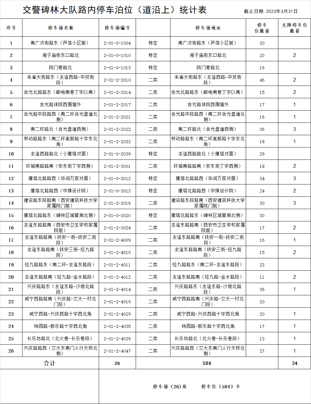 近日,西安公安交警部门根据《西安市机动车停车条例》的相关要求,对我市最新路内停车泊位予以了公示,一起来看—— ![]() 交警碑林大队辖区 ![]() ![]() 交警莲湖大队辖区 ![]() ![]() 交警新城大队辖区 ![]() ![]() 交警灞桥大队辖区 ![]() ![]() 交警未央大队辖区 ![]() ![]() 交警雁塔大队辖区 ![]() ![]() 交警高新大队辖区 ![]() ![]() 交警经开大队辖区 ![]() ![]() 交警曲江大队辖区 ![]() ![]() 交警长安大队辖区 ![]() ![]() 交警港浐大队辖区 ![]() 来源: 华商报、西安交警订阅号 【编辑:张洁】 免责声明:此文版权归原作者所有,若有侵权请与我们联系,我们将及时删除!联系电话:4000291515 |