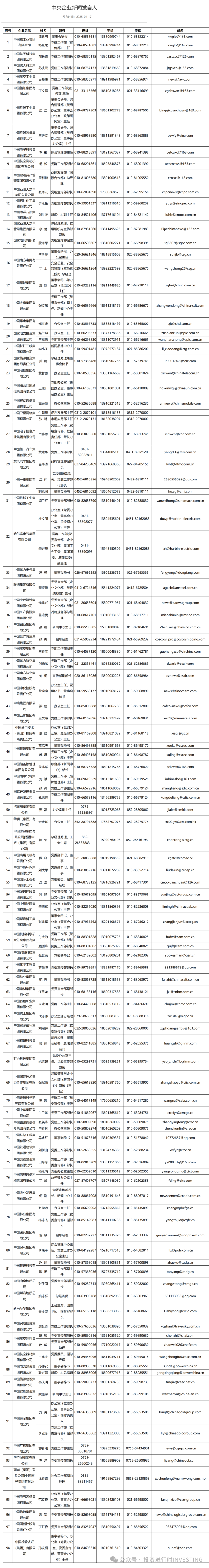 资本方舟船长,渡你,到中国100家央企彼岸!央企新闻发言人名录和联系方式。